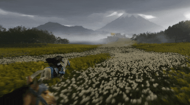 纵马跑在路上,风在吹、草在摇、鸟在飞、大小动物都在跑,远处的炮火在天上来回纷飞......除了那些刻意强调东方禅意、幽玄美学的段落,画面上基本都要保持数个动态细节,这很大程度上强调了世界的鲜活感。