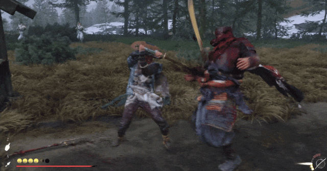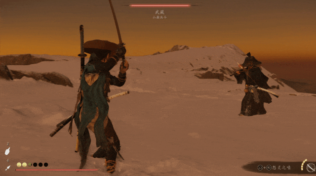 《羊蹄山之魂》的操作非常简单,就是最常见的轻重攻击、防御、弹反及闪避那套体系,再多一点不过是长按蓄力、组合按键出技能等等,基本属于即时战斗里最好懂的那一档了。