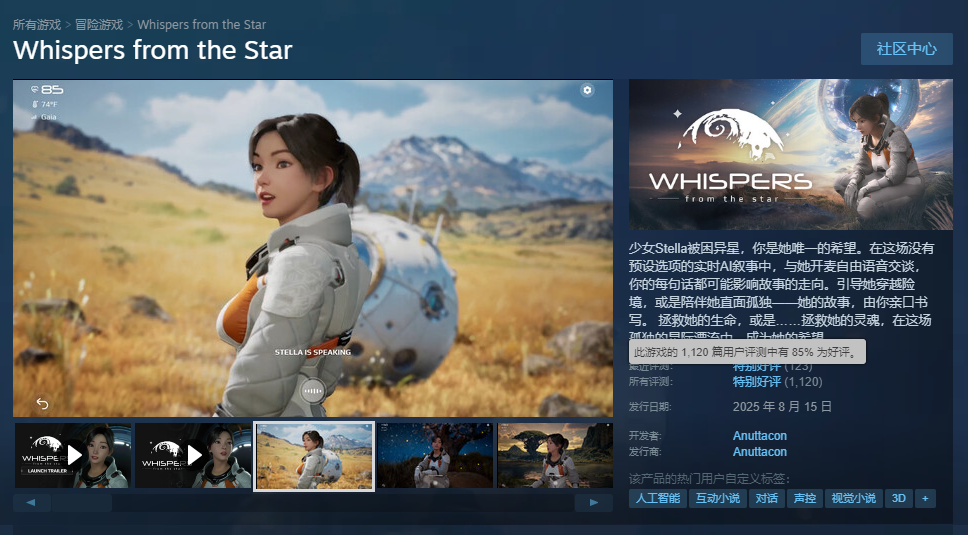 一位从业者在与陀螺君闲聊时指出,《星之低语》《AI2U》等产品出师不利,不仅大大降低了投资人和业界对AI游戏的预期,同时也一定程度上打击了玩家体验AI游戏的积极性。