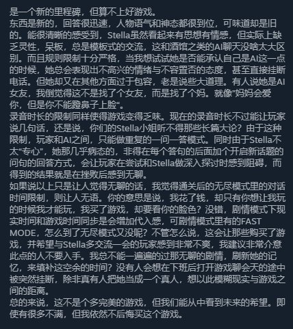 从评论来看,玩家的负反馈大多为流程自由度不足、规则死板、角色缺乏灵性。更有玩家直言,在深度体验过《星之低语》后,深刻认识到“这种游戏还有很长的路要走”。