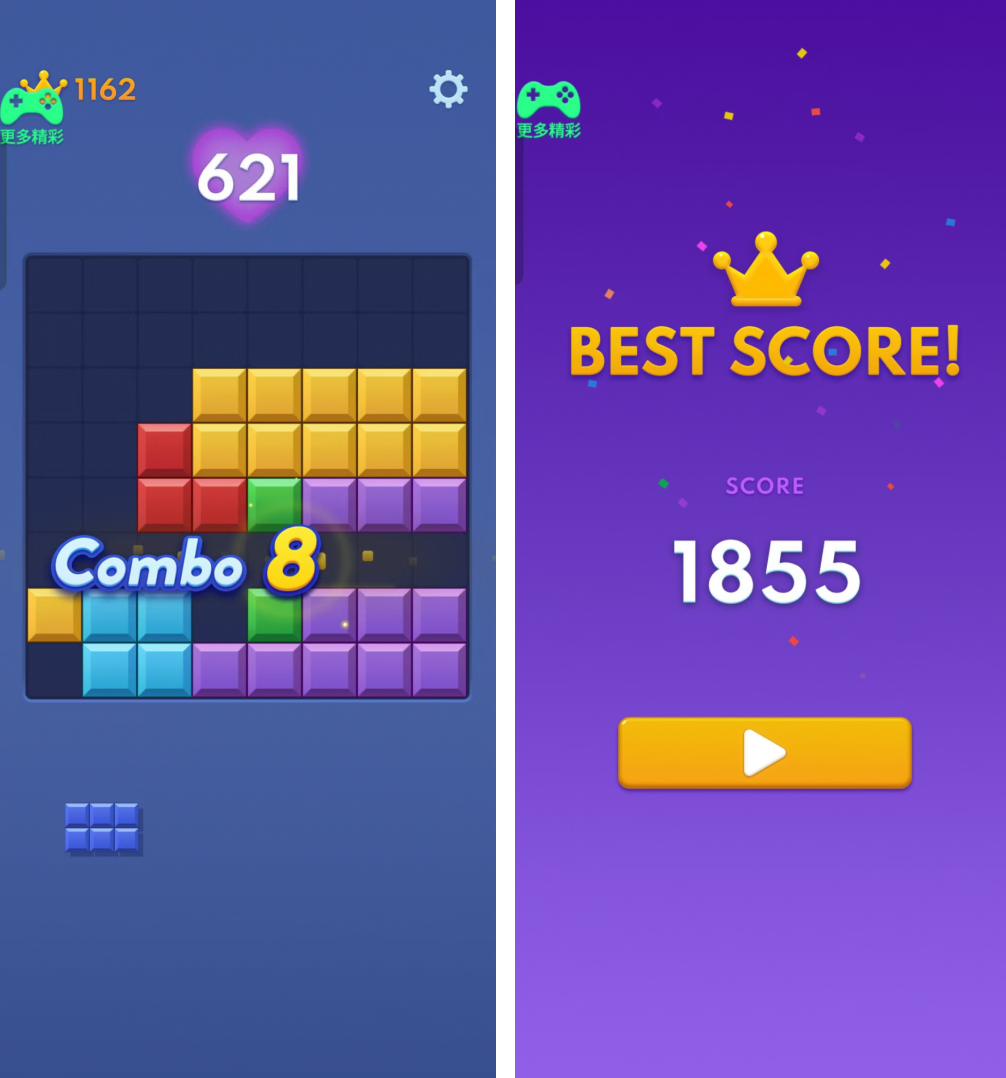得分效果与激励:清除方块后,玩家将看到特殊效果和激励语。打破高分将触发破纪录效果(无尽模式),提升满足感并激励玩家不断进步。