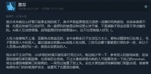 而其中比较明显的一个原因是,玩家普遍觉得《ARC Raiders》作为一款以“PvPvE”玩法为核心的搜打撤产品,在PVE体验上表现出色、沉浸感十足。