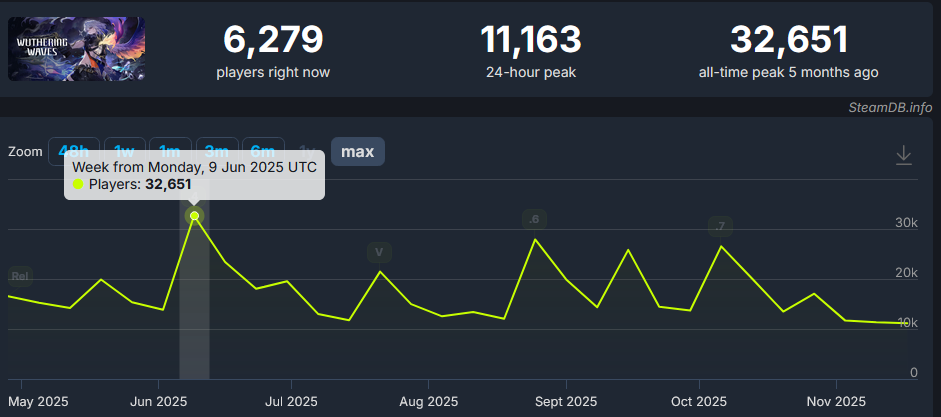 今年多款国内厂商发行的GaaS的Steam在线峰值超5万