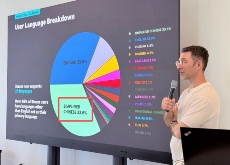据Valve的工作人员Erik Peterson今年在科隆游戏展的分享,Steam自2020年以来同时在线用户数量翻了一倍,目前已经超过4000 万,而目前简体中文玩家占比高达33.6%,已经超过英语玩家成为Steam上第一大用户群体。面对这样一个国内玩家集中和活跃的平台,厂商没有道理置之不理。