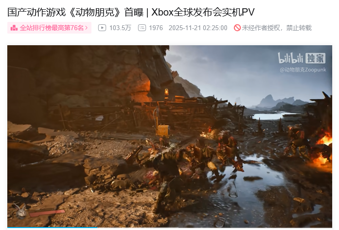 【2】11月21日,国产游戏新作《动物朋克》正式公开其首个游戏宣传片。据介绍,《动物朋克》由《暗影火炬城》原班团队钛核工作室打造,是一款延续其世界观的全新第三人称动作游戏,未来将以买断制形式登陆PC及各主机平台。