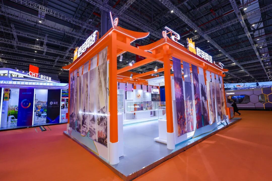 今年文博会上恺英网络展台最显眼的点在于,官方并没有局限于单款产品,而是将旗下各个类型的游戏IP与非遗技艺跨界联动的成果,做了一次集中展示。