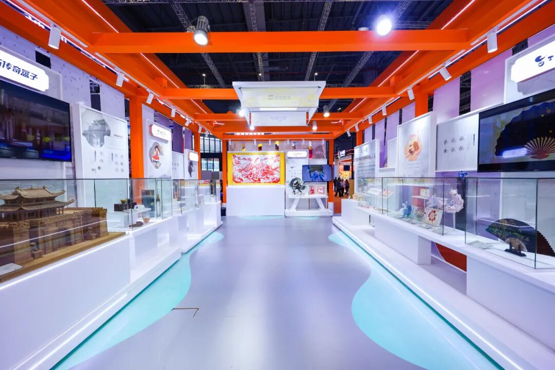 因为恺英本次在文博会上不仅展出非遗作品,更在展厅内播放定制联动纪录片影像,让观众可以在中式亭台的优雅环境之中沉浸式感受游戏+非遗文化的魅力。