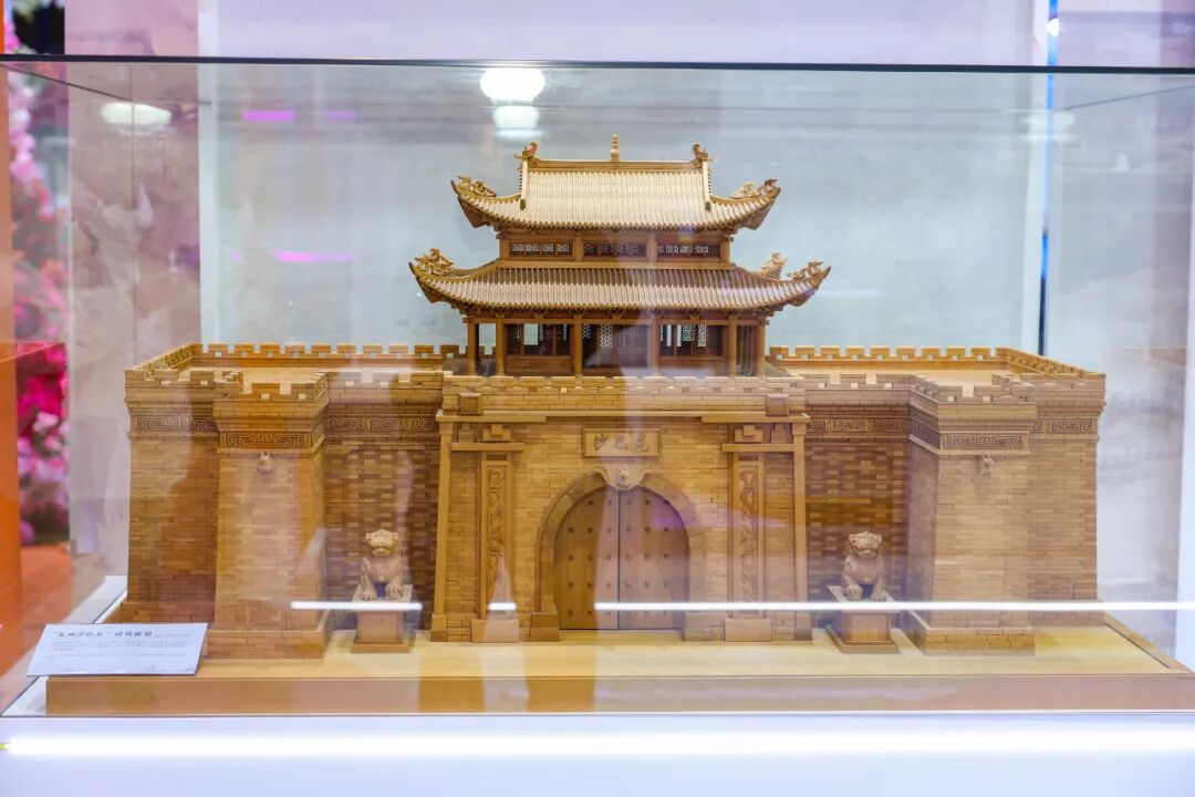 比如《蓝月传奇》与侗族木构技艺结合产出的建筑模型,就将虚拟的热血情怀转化成了可触摸的工匠奇迹。其中创作核心是提炼了游戏中象征兄弟情谊与荣耀的“龙城沙巴克”,将其磅礴、坚固的特质,与榫卯技艺不用一钉一铆却能历经千年的结构美学高度融合而成。