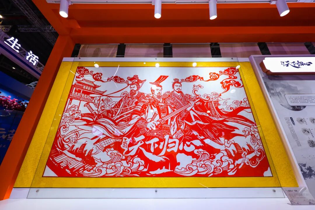 比如《蓝月传奇》和侗族木构营造技艺大师合作的,由2.8W零件组成的“龙城沙巴克”建筑模型就是首次对外展出。《三国:天下归心》和扬州剪纸国家级非遗大师合作的宽2米的“三国鼎立”剪纸作品也是首次曝光。