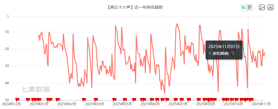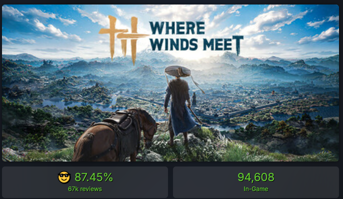 这一结果并不令人惊讶。自11月14日在海外多个平台上线以来,《燕云十六声》受到了海外玩家较为广泛的关注,Steam(国区暂未开放)的最高在线人数首日超过14万,并且表现平稳,在上线一周后突破了25万。