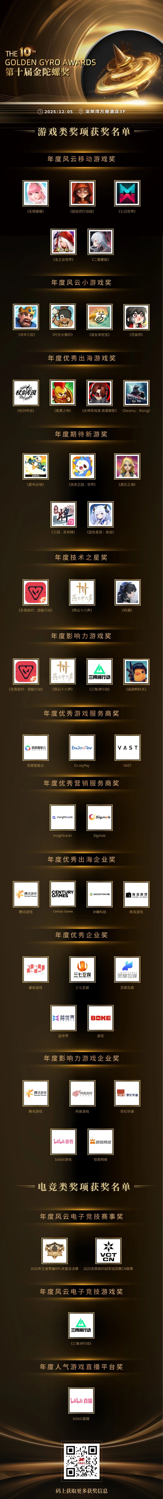本届金陀螺奖设立游戏、电竞、XR三大类别,涵盖超过30个细分奖项。作为行业年度影响力大奖,金陀螺奖始终致力于表彰勇毅前行、创新进取的行业引领者与从业者,持续获得业界的广泛参与和认可。