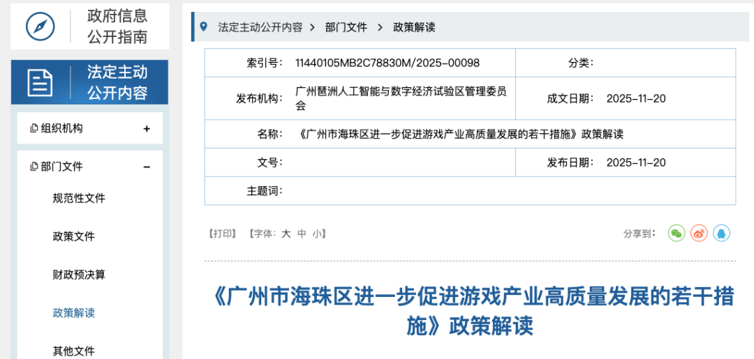 11月20日,广州市海珠区科技工业商务和信息化局印发了关于促进游戏产业高质量发展的若干措施的通知,旨在促进海珠区游戏产业发展。