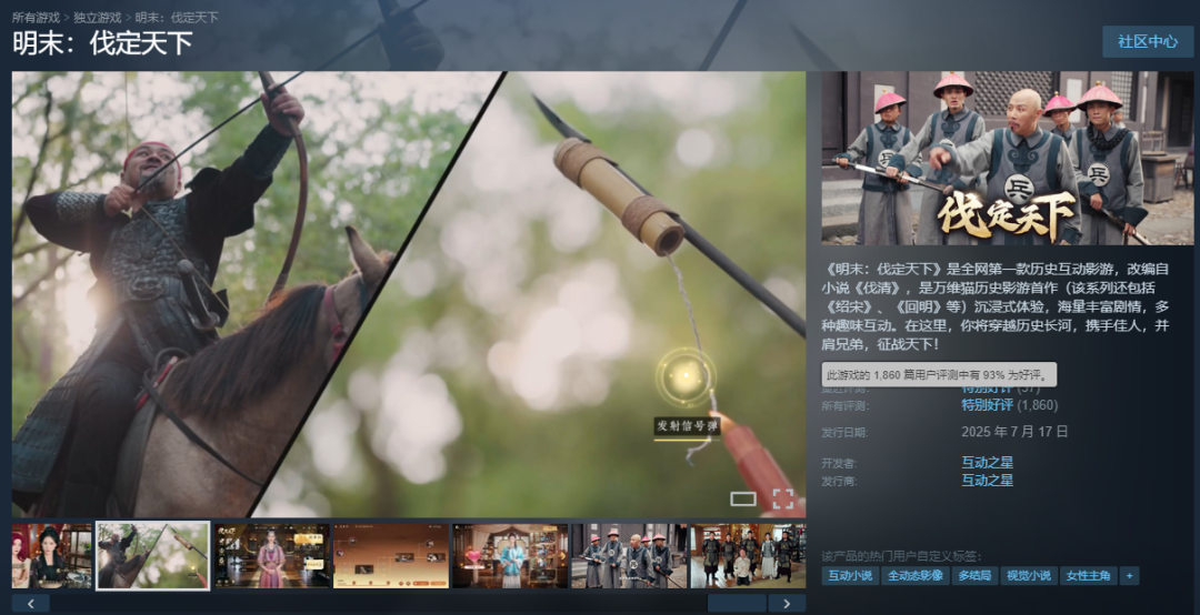 今年,万维猫动画、光线传媒纷纷官宣进军游戏行业。万维猫动画在1月和原力联合推出了《凡人》IP的动画Demo演示,还在7月推出了以明末为背景的历史题材互动影游《明末:伐定天下》。