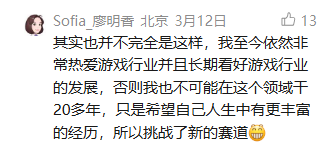 但离开也未必就是不再热爱,曾在金山从基层做到了高管、创办了蓝港在线,最后转到食品行业的廖明香今年接受了媒体采访,表示依然看好游戏行业,对自己来说只是选择了新的人生赛道。