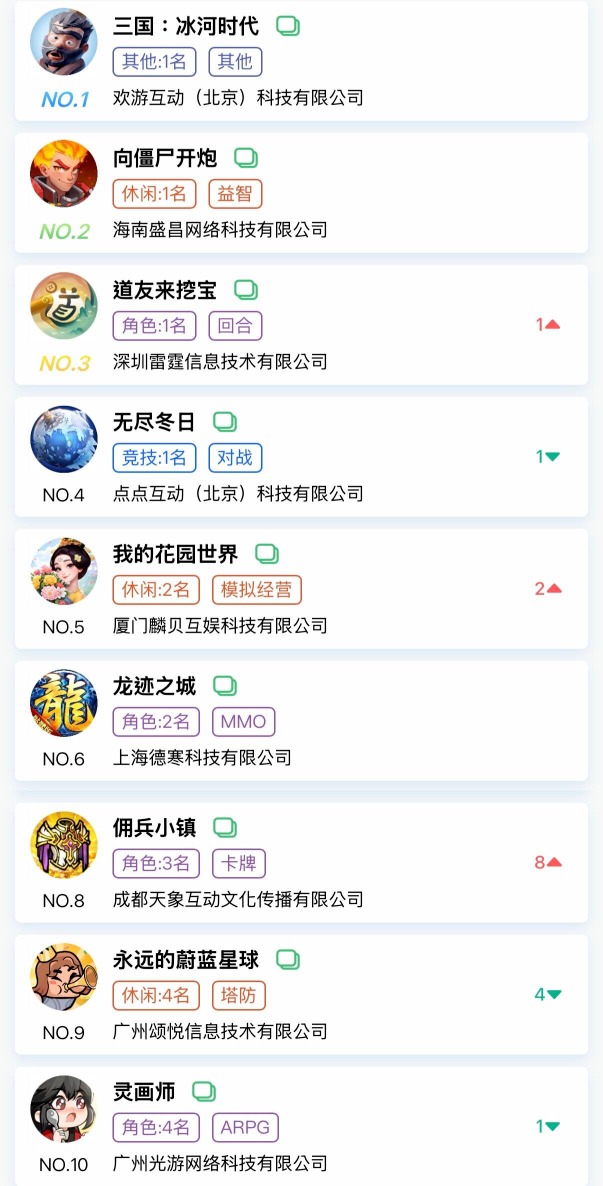 本期TOP 10变动较多,《无尽冬日》今年首次掉出前三,位列第四;雷霆的《道友来挖宝》名次上升至第三。