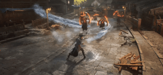 A:对,我们把它简化了。有点像《星球大战》里的绝地武士。他有光剑就不会再用其他武器,因为他觉得没意义。如果你都能控制“五行”的力量了,也就没有必要再拿一把剑,因为你可以直接用金属性的力量去生成类似武器的东西。