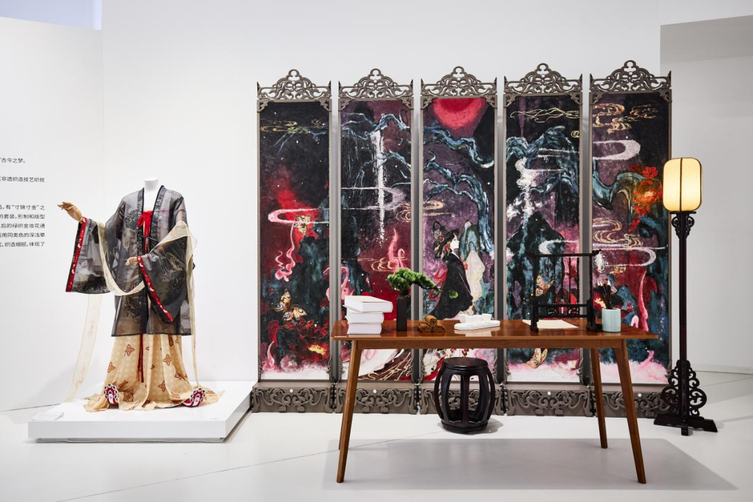 此外,与服饰史学者陈诗宇合作复原的中晚唐服装与由岩彩珐琅非遗传承人徐华老师打造的岩彩珐琅屏风,都是实打实地“堆料”了诸多非遗工艺,让观者可以直观地看到《闪耀暖暖》与非遗工艺的对话,展现其在服装美学和文化传承上的深厚积累。